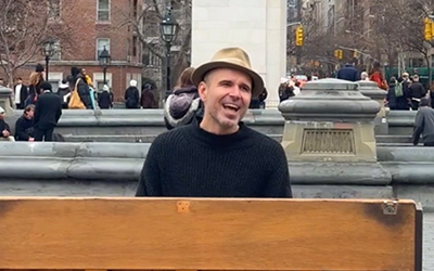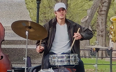 Alex Feldman is a drummer, bandleader, and composer based in New York City. As the driving force behind the West Fourth Trio, Feldman has carved out a distinctive presence in the city’s street music scene.